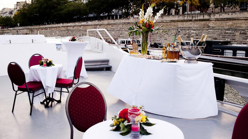 For exceptional events, opt for our custom private rental service. Whether it's a lavish wedding, an exclusive product launch, or any other special occasion, we work closely with you to create a tailor-made experience that meets your precise needs. Choose the boat, cruise duration, onboard services, and even embarkation and disembarkation points. Our dedicated team will ensure that every detail is taken care of, guaranteeing the success of your event. Provide your guests with a unique and personalized experience along the banks of the Seine, with impeccable service and an enchanting setting that will be etched in memories.
