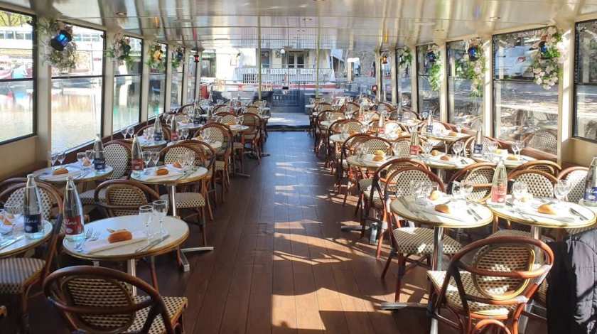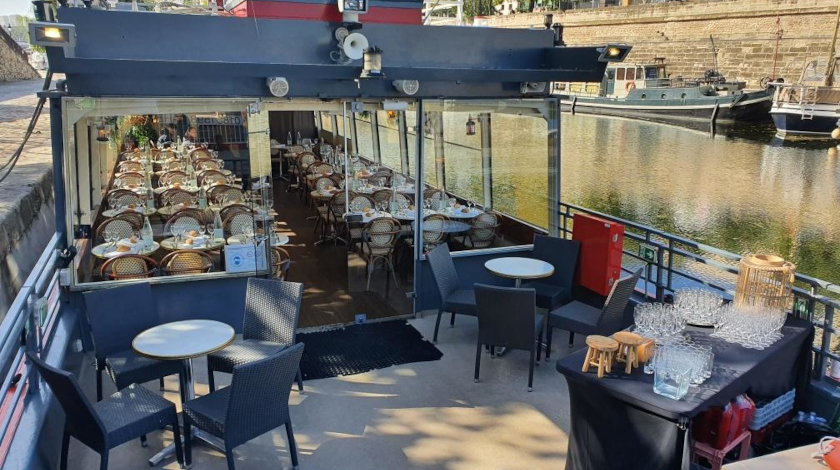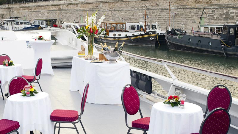 Whether over a glass of Champagne or a meal, your guests will appreciate the exceptional setting of Le Parisis, completely renovated in 2019. The main lounge can welcome up to 110 passengers and features a stunning bar, while up to 200 guests can enjoy the outdoor areas: the front terrace and the upper deck.