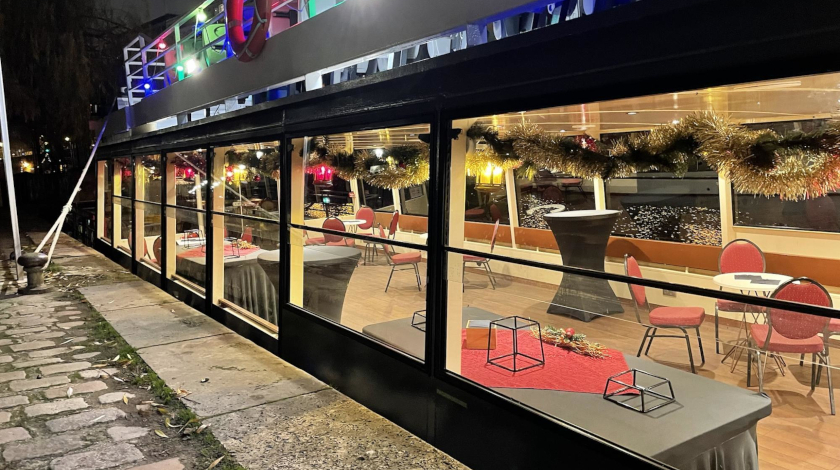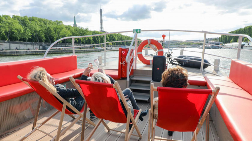 At €19 per adult and €9 per child, enjoy an hour-long cruise in a lounge music atmosphere, with a included drink (a glass of champagne, a glass of wine, a beer, or a non-alcoholic beverage). Our lower deck is covered, air-conditioned, and heated, with an open-air terrace and a bar, offering a friendly atmosphere for up to 120 people. Embark on an unforgettable adventure along the Seine!
